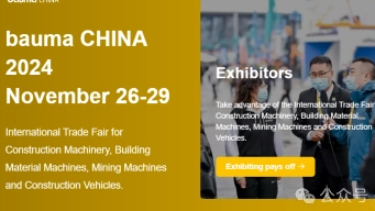 Bauma Chine 2024 将于 2024 年 11月 26-29 日在上海新国际博览中心举办。展会将汇聚国内外行业翘楚 , 全面覆盖工程机械与车辆、矿山机械、建材机械、传动及流体技术、配套件及服务、新能源技术、数字化工地、智能制造装备全产业 , 展示行业创新发展。